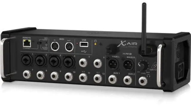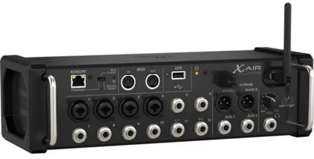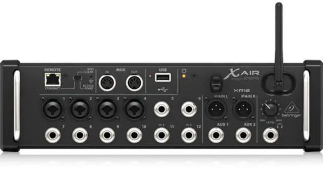 Behringer X AIR XR12 is a powerhouse 12x4 portable mixer that's housed in an extremely sturdy stage box and designed for use with iPad and Android tablets. It features 4 award-winning Midas-designed mic preamps, convenient integrated Wi-Fi module for wireless control, and USB connectivity for file storage, system updates, and uncompressed stereo recordings via the USB Stereo Recorder.