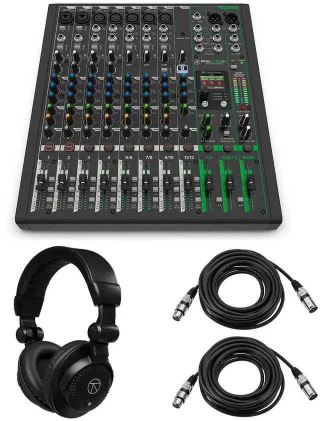 Mackie ProFX12v3+ is a professional analog mixer and USB-C audio interface with powerful enhancements for studio-quality recordings and live streams. Capture your performance with Onyx preamps and channel EQ, add computer audio via loopback, bring in calls via Bluetooth and enhance your sound with upgraded GigFX+ effects on a color LCD screen.