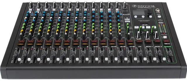 Take multitracking and live performance to the next level. The Mackie Onyx16 is a premium 16-channel USB mixer optimized for professional recording, production and live sound. Experience impeccable sound quality, a flexible FX engine and seamless workflow for the studio or the stage. Flawless Sound and Maximum ControlRecord, produce and perform with a 16-channel mixer that offers remarkable performance, exceptional versatility and a wide host of features that will ignite your creativity. Every detail of the Mackie Onyx16 is geared towards recording at a professional level, from our award-winning Onyx preamps to the Perkins "British Style" EQs inspired by classic desks from the '60s and '70s.