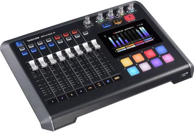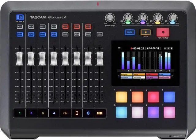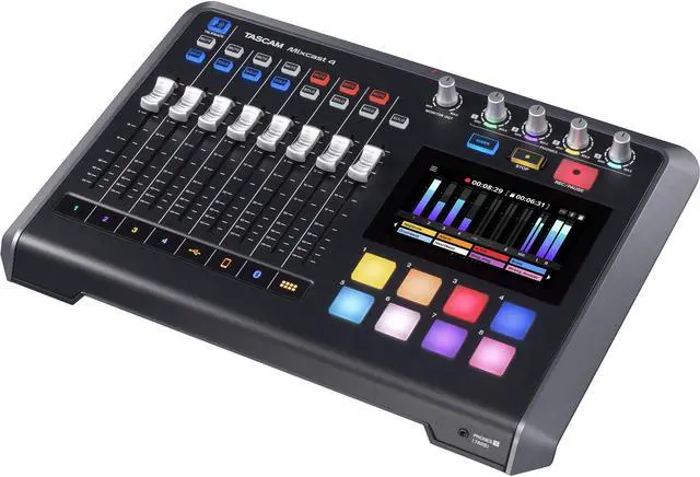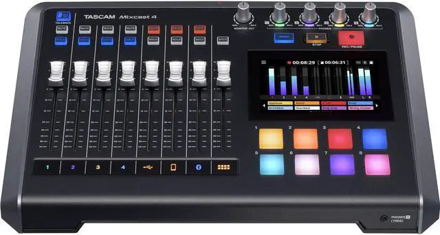 The TASCAM Mixcast 4 Podcast Station Bundle is a comprehensive podcasting solution that includes essential components for a multi-person podcasting setup. The bundle features 4 XLR microphone inputs with individual phantom power and auto-mix functionality, allowing for the simultaneous recording of up to 4 people with automatic adjustments to avoid mic overlap and ensure a clean mix. The versatile mix control is facilitated through a touch screen, enabling users to control individual microphone faders, headphone levels, and master volume. Dedicated sound pads add sound effects, music, and jingles for dynamic and engaging podcasts.