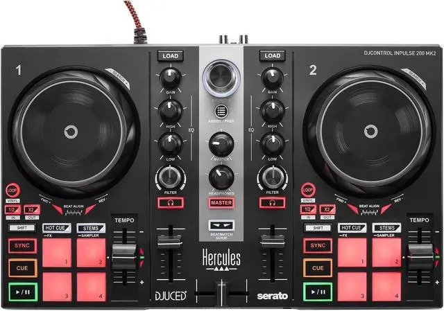 The Hercules DJLearning Kit MK2 includes all the essential accessories to help beginners start their adventure in the world of DJing. This kit includes the Hercules DJControl Inpulse 200 MK2, a compact and easy-to-use DJ controller that incorporates intelligent algorithm-based tutorials and features, as well as DJMonitor 32 monitoring speakers and DJ45 HDP headphones. Serato DJ Lite and DJUCED® mixing software are also included. In addition, Hercules guarantees access to a comprehensive library of songs and tutorials to learn DJing so users can create their own creative mixes from day one. With the Beatmatch Controller Guide, you can sync your tracks using the light guides located under each jog wheel and to the right of the tempo faders.