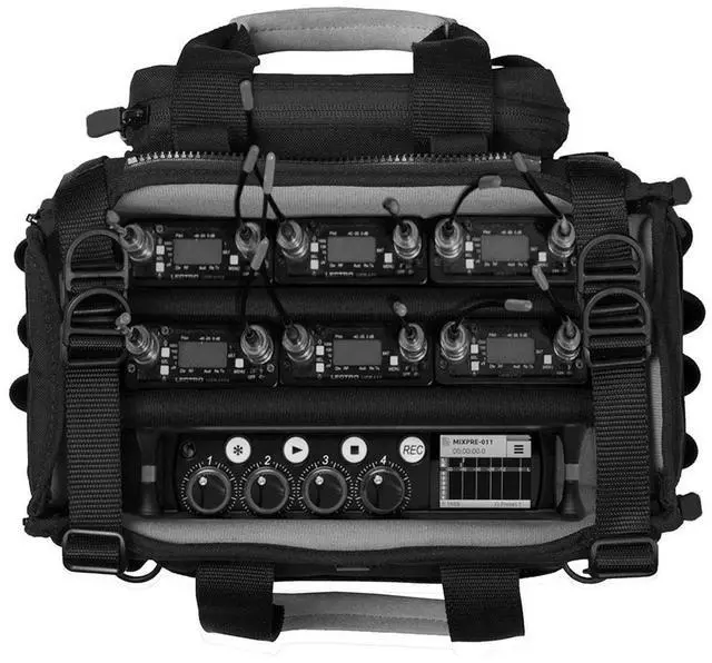 Made to be Quiet As its name suggests, the Audio Organizer SILENT series case is made to be quiet while recording and is intended for use with audio field mixers and recorders with quiet connectors. The bag achieves this with quiet magnetic connectors. It also features rubber-tipped zippers that prevent the sound of metal on metal when recording. Pockets & Other Storage This case is a large self-contained unit, designed specifically for audio recorders and mixers with quiet connectors. Thanks to plenty of storage options there is also ample room for multiple receivers.