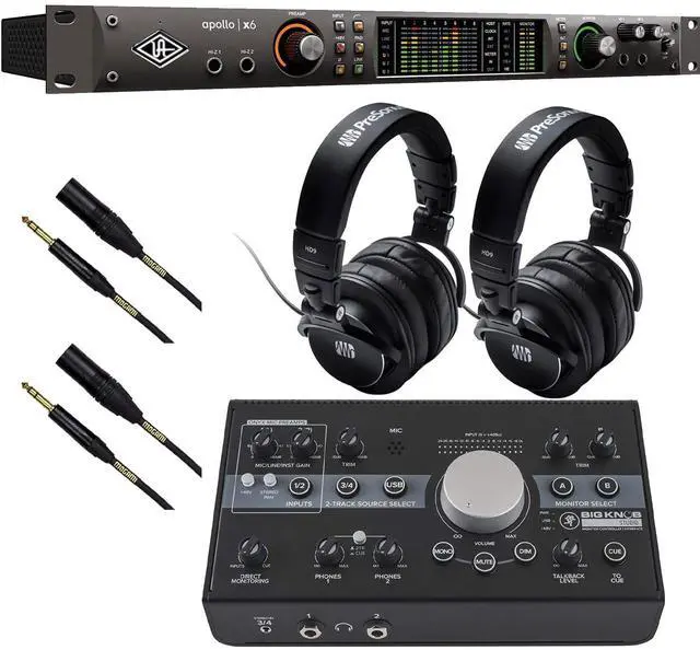 Universal Audio Apollo x6 Heritage Edition 16 x 22 Thunderbolt, Mackie Big Knob Studio, (2) Mogami XLR to 1/4, (2) Presonus HD9 Bundle