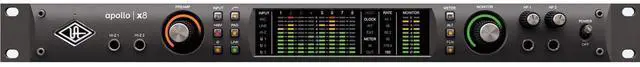 Furnished with elite-class 24-bit / 192 kHz conversion, rivaling dedicated high-end converters, the Apollo x8 gives music creators, record producers, and postproduction engineers the appreciable value of crystal-clear high-resolution recording and mixing with ultralow distortion (-119 dB) and immense dynamic range (129 dB). Additionally, its switchable headroom setting facilitates proper level-matching with a variety of audio equipment.