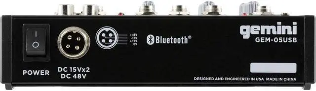 Gemini GEM-05USB Compact 5 Channel Bluetooth Audio Mixer is designed to make podcasting easier. Equipped with Bluetooth streaming, USB playback, customizable sound, and a 5-input 2-bus mixer, the GEM-05USB brings state-of-the-art professional-quality recordings on the go by giving you all the controls you need. This mixer was made to fuse a user-friendly interface with a premium sound.