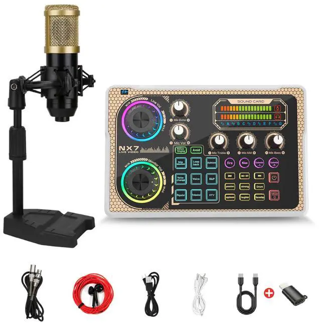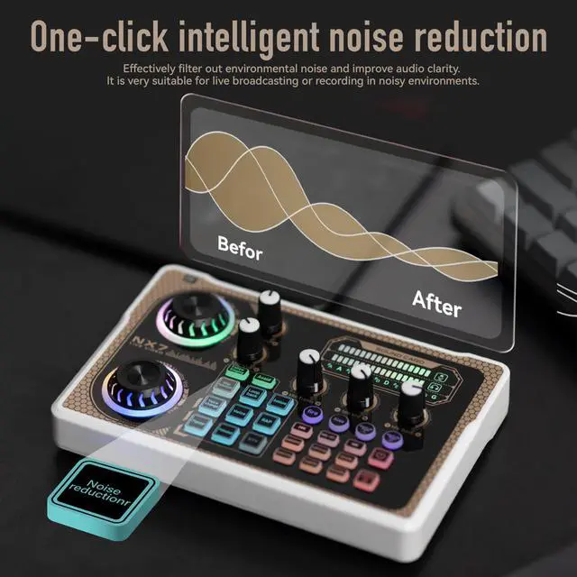 HICALL NX7 Mixing Console Sound Card Microphone Set with 8 Streaming Modes, 9 Voice Effects, Smart Noise Reduction, Long Battery Life Compatible with Phones, Tablets, and PCs