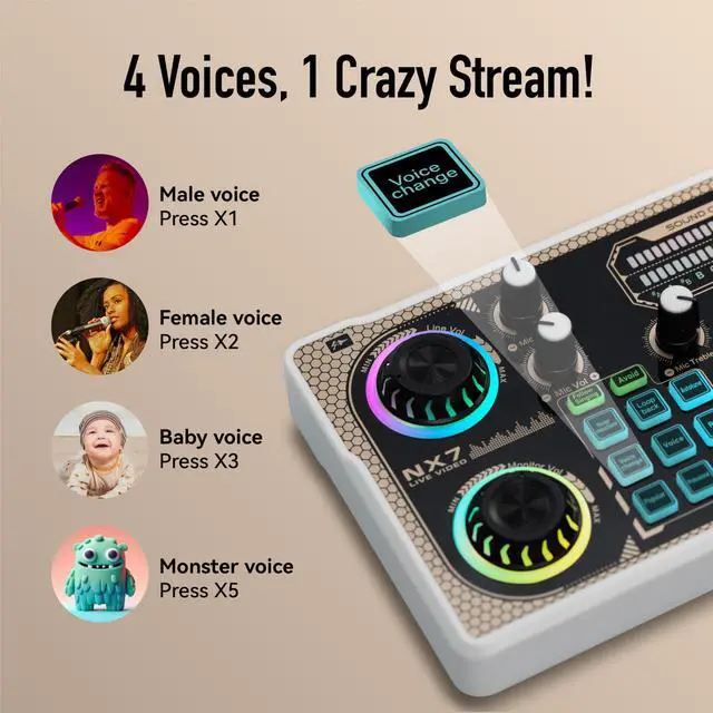 Voice Changing & Real-Time Effects Includes 4 voice-changing optionsmale, female, child, monsterplus 9 live audio effects such as reverb and echo, perfect for interactive audio content.