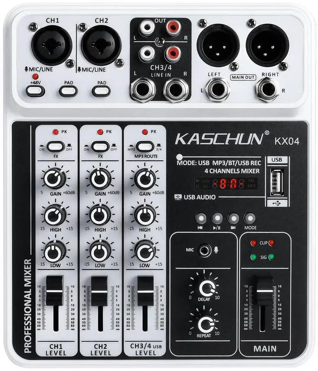 Add delay or echo effects to your mix and easily adjust the high and low frequencies on each channel. Ideal for computer music recording, live streaming, podcasts, weddings, Karaoke, Home Recording and more.