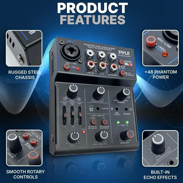 - Built-in Echo Effect - Extremely Musical 2-band EQ & PAN on each Channel