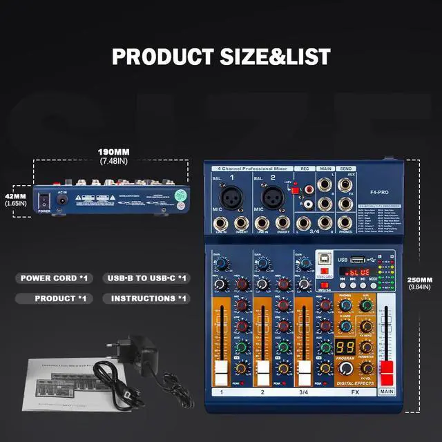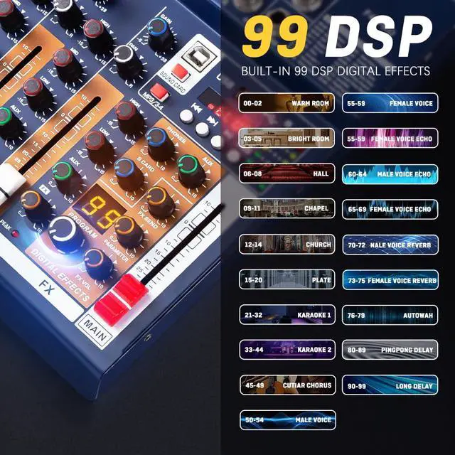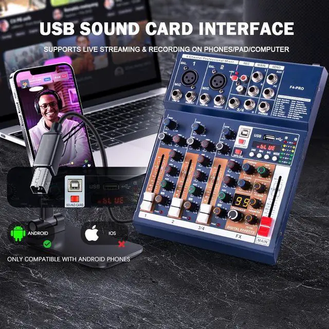TAVOSOP PRO DJ console controller mixer with audio USB interface, plus a dedicated interface for connecting Android phones, equipped with a printer interface to TYPE C data cable, can be directly connected to the phone for recording, live broadcast, volag, singing