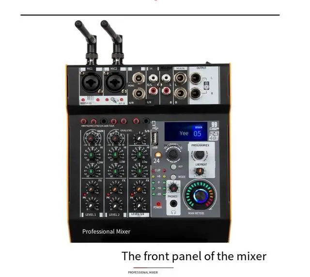 The mixer is equipped with a USB interface. By inserting aUSB drive into the mixer, you can play the songs on yourUSB drive. It can be directly connected to devices withUSB interfaces, which is fast and convenient. The displayscreen shows the playback status in real time and theoperation is very easy.