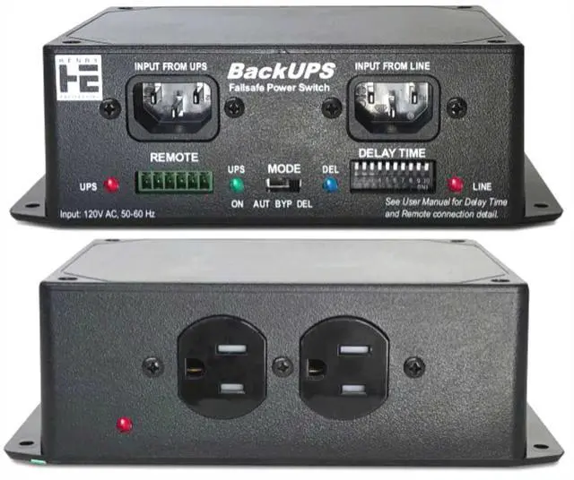 BackUPS is a power controller for ensuring reliable AC power to critical equipment that is powered with an Uninterruptible Power Supply (UPS). BackUPS constantly monitors the output of the UPS, and automatically bypasses the UPS if its output fails or becomes unstable. BackUPS has two AC inputs: LINE and UPS. Line is plugged directly into a local AC socket;