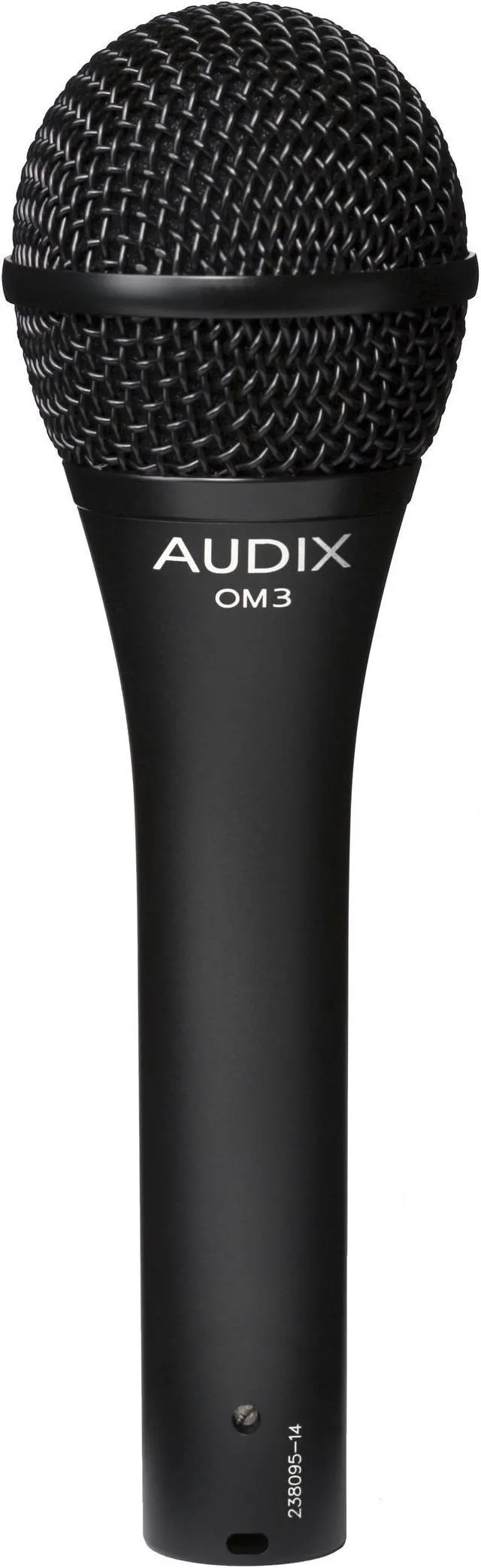 In terms of build, the OM3 is well-balanced and comfortable to hold, reflecting its versatile and professional nature. Its durability is unquestionable, constructed with a precision die-cast zinc alloy body and a robust black E-coat finish. The microphone's identity is permanently marked with a laser-etched model number, and it is protected by a sturdy steel mesh grill. Connectivity is ensured with a high-quality Switchcraft or Audix XLR connector, and it comes complete with a heavy-duty nylon clip for secure mounting.