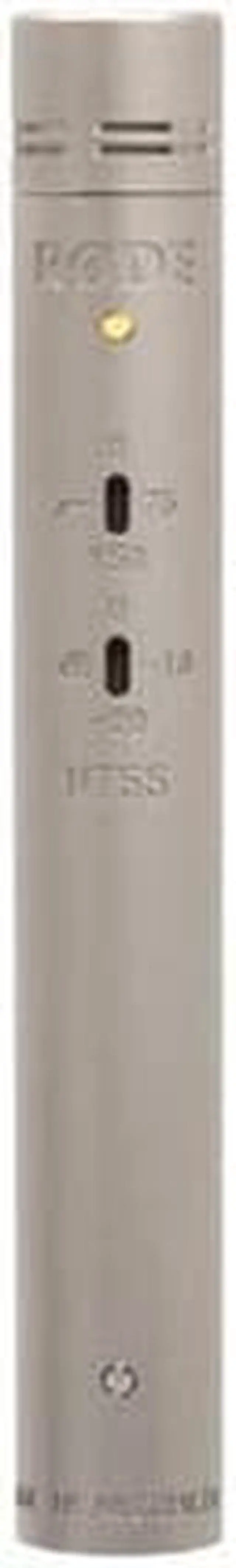 Like the NT5, the Rode NT55-S is a small-diaphragm, true-condenser cardioid microphone, sometimes referred to as a ' pencil mic'. The NT55-S adds both a three-position pad (0, -10dB, -20dB) and three stage high pass filter (Off, 75Hz, 150Hz), and includes the interchangeable NT45-O omnidirectional capsule. Intended for recording acoustic instruments, drum overheads, cymbals and live performances, the compact externally polarized mic employs a 1/2" capsule, an active J-FET impedance converter with bipolar output buffer. Its tight cardioid pickup pattern also makes it ideal for use as an indoor dialogue microphone for filmmaking on a mic stand or boom.