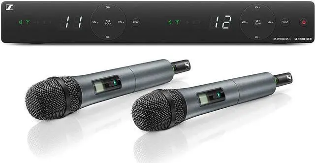 A 2-channel wireless system especially suitable for singers and presenters, Sennheiser's XSW 1-825 DUAL is designed with simplicity and ease of use in mind. Analog UHF wireless systems that feature a sleek dual-channel receiver with onboard antennas as well as the streamlined interface made popular with Sennheiser's XS Wireless 1 series, along with 2 Sennheiser SKM 825-XSW handheld transmitters with mute switch and e 825 dynamic cardioid mic capsules.