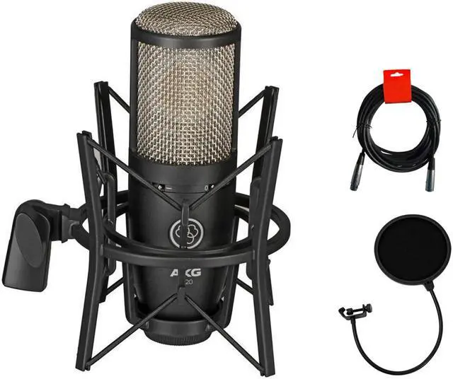 For a variety of miking applications including lead vocals, acoustic guitar, and brass instruments, the black Project Studio P220 Large-Diaphragm Cardioid Condenser Microphone from AKG features a 1" true condenser capsule with a cardioid polar pattern. The cardoid pattern helps focus audio capture in front of the capsule, reducing unwanted ambient sound from the other sides and back. A low-cut filter at 300 Hz allows you to cut unwanted low end from your sources, while its selectable -20 dB pad allows the mic to handle SPLs up to 155 dB, allowing it to be placed in front of a variety of sources. A spider shockmount and aluminum carry case are included. This bundle includes a Pop filter & and extra XLR-XLR cable.