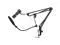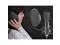 You also get a microphone stand that bends and suspends the microphone. This is similar to the support on an angle poise lamp, and it clamps to a desk, rather than standing on the floor. The stand has a high-tech grip, which acts as a shock mount, and wont let the microphone slip, even if you choose to hang it upside down. You have probably seen videos of popstars recording in the studio. You frequently see a guard placed between the singer and the microphone. This is called a pop filter and it prevents bursts of breathe causing bumping sound when they hit the microphone.
