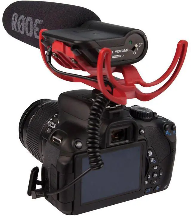 The Rode VideoMic with Rycote Lyre Suspension System is a shotgun microphone that can easily be mounted on a DSLR camera. It features a Rycote suspension system that attaches to the camera's shoe. The VideoMic is lightweight and when mounting on a camera it does not appear in the frame. The VideoMic can also mount to Rode's boompoles for elevated audio capture. Its super-cardioid polar pattern attenuates sounds from the sides. The result is a signal that sounds closer to the camera, even when shooting in noisy environments or at moderate distances.