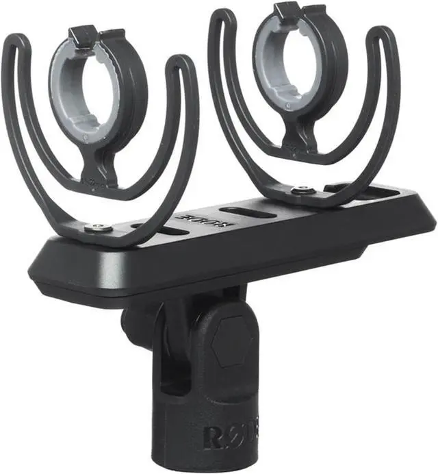 Make your audio recording experience superior with the SM4-R Dual Rycote Lyre Suspension Shock Mount, a professional-grade product from Rode, a brand synonymous with high-quality audio equipment. This versatile shock mount is designed to securely hold various Rode microphones, making it an essential tool for any audio professional or enthusiast. The SM4-R is compatible with both 3/8" and 5/8" threaded mic stands or boompole, offering flexibility in your setup. Its sturdy construction ensures your microphone stays in place, providing reliable and consistent performance. What sets the SM4-R apart is its dual Rycote Lyre mounts.