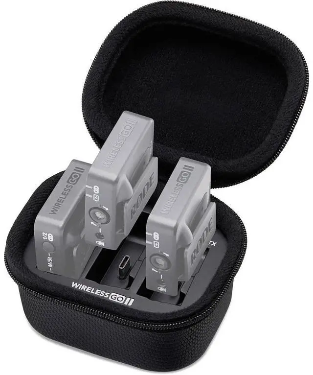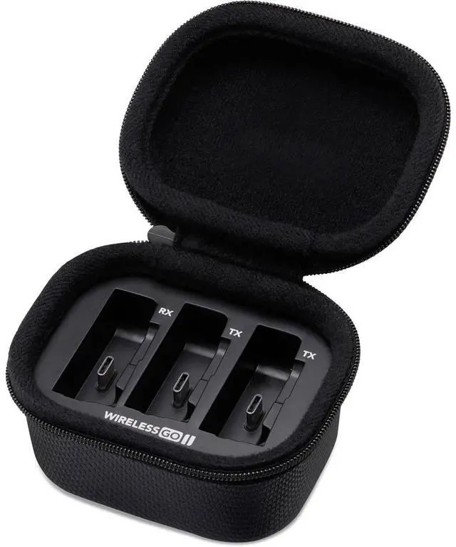 Its rugged enclosure and secure zip system shield your equipment from potential damage during transit or storage. In essence, this charging case is more than just a power source; it's a protective, portable, and reliable companion for your Wireless GO II Microphone System. Whether you're a professional recording artist, a passionate hobbyist, or a traveling performer, this charging case ensures your audio equipment is always ready and protected.