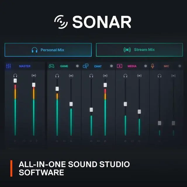 Say bye to generic mics rebranded as gaming mics. Say hey to Alias powered by Sonar. Alias is the first mic truly designed for gaming. Sonar is the only software that makes you sound pro without being pro. No matter how hype you get or how high you jump out of your chair, Alias always captures your voice. Go live loud and clear in three simple steps. Mod your audio from an easy-to-use interface and buff your mic for studio grade sound. Connect any mic or headphone. Then set Sonar Stream as your single source in any stream software.