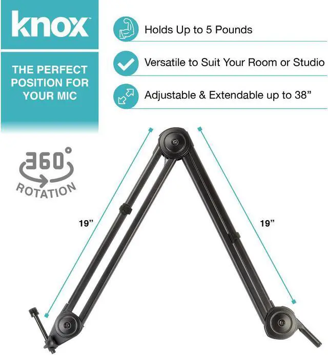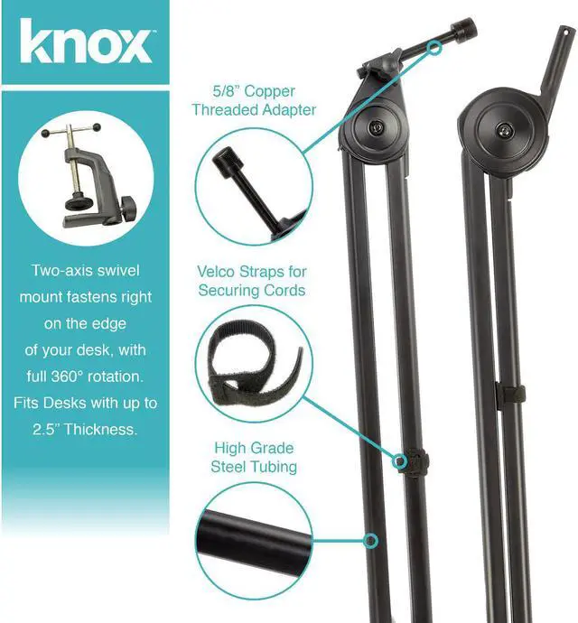 The world of music, voice acting, and broadcasting is one that requires everything to be perfect. You know that if one thing goes wrong, it can lead to a host of audio issues leaving you to start all over from scratch. To achieve the ideal set up, you need the right equipment and Knox is your go-to for the best studio gear. This desktop boom mic stand is the best option to create a perfectly smooth and comfortable setup for your broadcasting or music recording experience. You’ll love the durable quality, ease of installation, and complete control and adjustability.