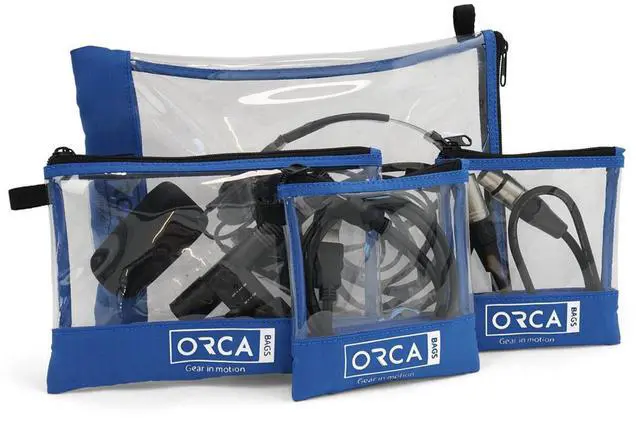 The Orca Bags OR-180 4 Transparent Accessories Pouches set was design to help and organize the user accessories inside the bag with maximum visibility. The pouches can safely secure Headsets, connectors, small wireless system, microphones, camera adapters, batteries, cables, on-camera light, small monitors and more.
