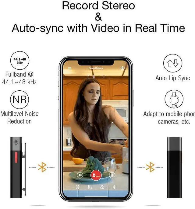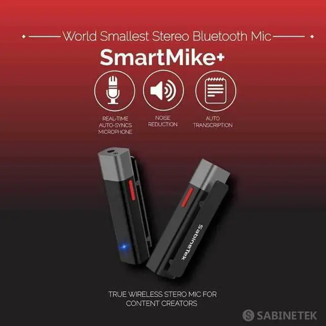 SMARTMIKE+ IS THE TRUE WIRELESS STEREO MIC FOR CONTENT CREATORSCreating content with high audio quality has never been easier. Do you want to increase your likes, views, and subscribers on social media by ten-fold? Any job professions dealing with content creation will benefit using SmartMike+. In the core of SmartMike+ is one of a kind Bluetooth 5.0 technology. SmartMike+ is small, portable, produces great sound, and has longer battery life than any other microphone on the market.SmartMike+ Features:Real-time auto-syncs microphoneRecord & mix multi-channel audioWorks with iOS and Android smartphonesWorks with DSLR, Go Pro, DJI Osmo Pocket, PC, and other devices (Twin Package is needed for Receiver/Mic mode)Works with 3rd party apps such as Facebook Live, TikTok, and Snapchat (Twin Package is needed for Receiver/Mic mode)Noise reductionAuto transcription (Beta)NOISE REDUCTION WITH THE SMARTMIKE+ APP:When creating video content outside, loud background noise is inevitable. It can ruin your viewer's experience. The app and SmartMike+ will greatly reduce background noise.MASTER/SLAVE MODE:So what about devices that don't have Bluetooth, how on earth do we connect the SmartMike+ to them? The powerful M/S (Master/Slave) mode allows two SmartMike+ to act as a receiver and transmitter/microphone. Simply hook up one SmartMike+ to your digital camera/GoPro/PC/speaker via the 3.5mm AUX cable to act as a receiver.The SmartMike+ can be used with any third-party app on a smartphone via Bluetooth, such as Filmic-Pro, Tiktok, Facebook Live, Instagram, YouTube Live, etc. For the best sound quality use the SMike+ app or use two SmartMike+ in M/S mode for the highest audio resolution using your phone's audio input port.SMARTMIKE+ SPECIFICATIONS Weight0.494 oz (14 g)Dimensions2.3x0.4x0.6 in (5.8x1x1.5 cm)Maximum Working Hours5 hours + can extend battery life with a power bank