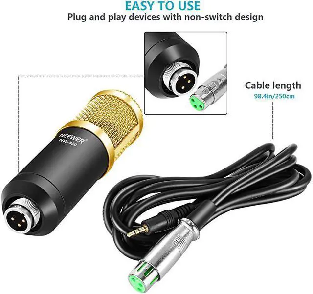 Required: 5V) for it. When connected with desktop computer, the Microphone could be used alone; When connected with laptop computer, please connect the laptop to electrical outlet, or use a 48V phantom power to get enough power if the sound is not clear and high enough. 2. If your device could not provide enough power(when used with Amplifier or Mixer, etc. ), the sound volume recorded might be low, and please use a extra 48V phantom power adapter to connect it. 3. The microphone can not be used with mobile phone and tablet computer.
