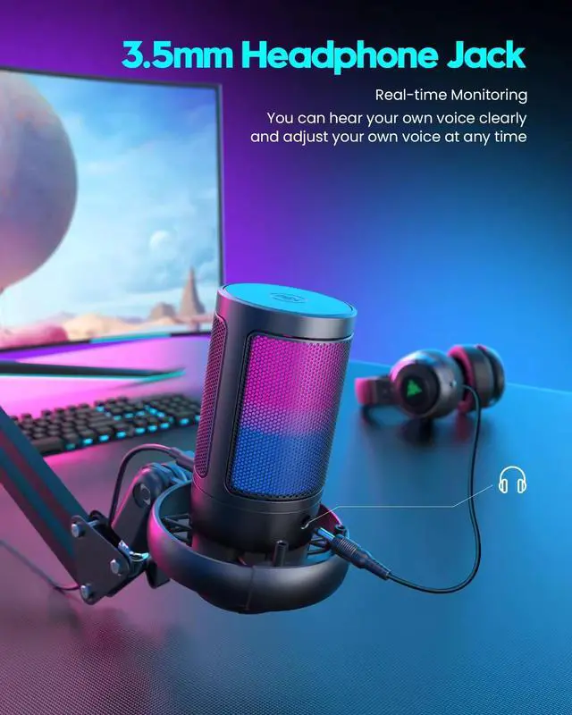 Function: Light-weight, Condenser Microphone, USB Microphone, With RGB lighting, PORTABLE, Noise Cancelling, With LED lights