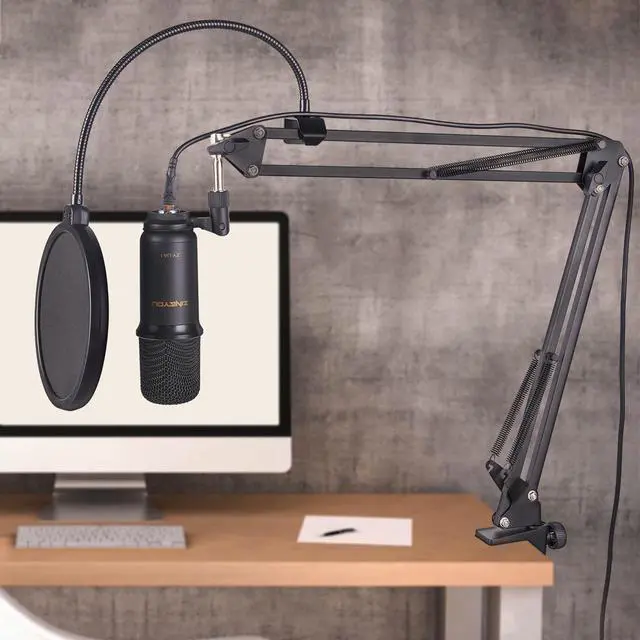 Whats in the box - The microphone bundle comes with a ZY-UA1 USB Microphone. Sturdy and durable, an all-metal shock mount, an adjustable suspension scissor arm, a dual-layered pop filter, a 5 ft USB cable, and a user manual. Start your project with this ZY-UA1 plug and play microphone kit