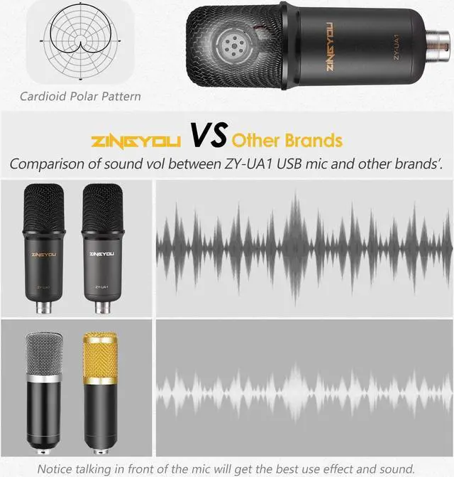 Upgrade sound quality - Upgrade and improve circuit board to reduce the noise and can increase mic volume. The high sample rate of 192KHz/24 bit and smooth frequency response of 20-16000Hz make a clearer and more realistic sound. Mic net head built-in sponge clears up vocal pop plosives. The cardioid pickup pattern focuses on picking up the sound from the front of the microphone, reducing extra noise and background sounds. (It means you need to face the ZINGYOU logo when you speak. )