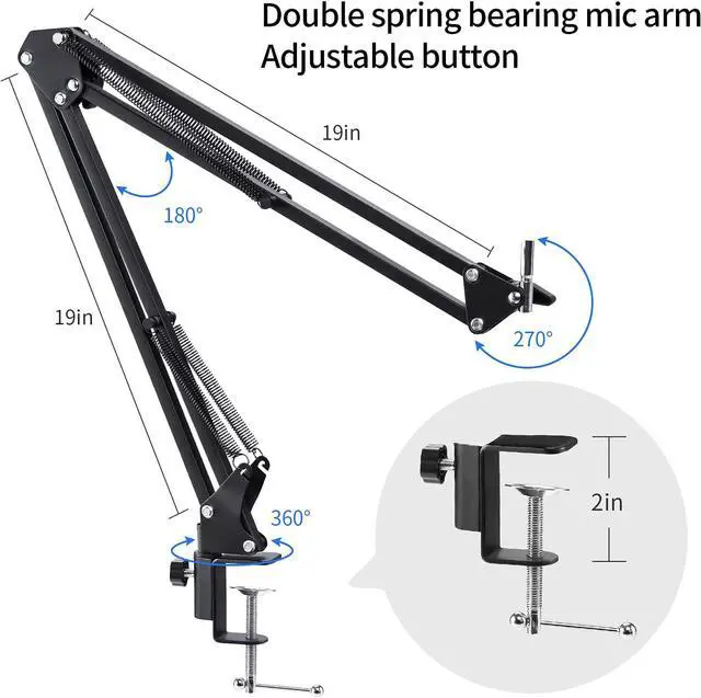 Very easy to install, just need to unfold the tripod and attach it to the microphone, secure the bottom knob to the table 180-degree flexible design allows you the adjust any angle as you want and The microphone fixing device is very stable.