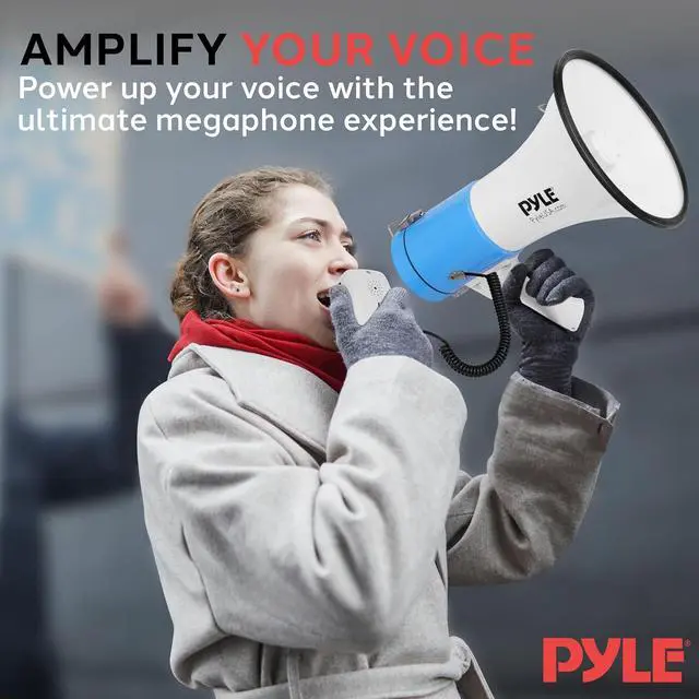 POWERFUL AUDIO OUTPUT - This megaphone offers: Talk, Siren, Music, Whistle, and Record (up to 60 seconds). It features a button-activated automatic siren alarm and delivers a powerful 50-Watt MAX output, ensuring your message is heard loud and clear.