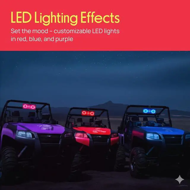 VIBRANT LED LIGHTING MODES - Equipped with red, blue, and purple LEDs for solid or pulsating glow effects. This atv sound bar adds style and visibility to your nighttime outings while delivering immersive audio