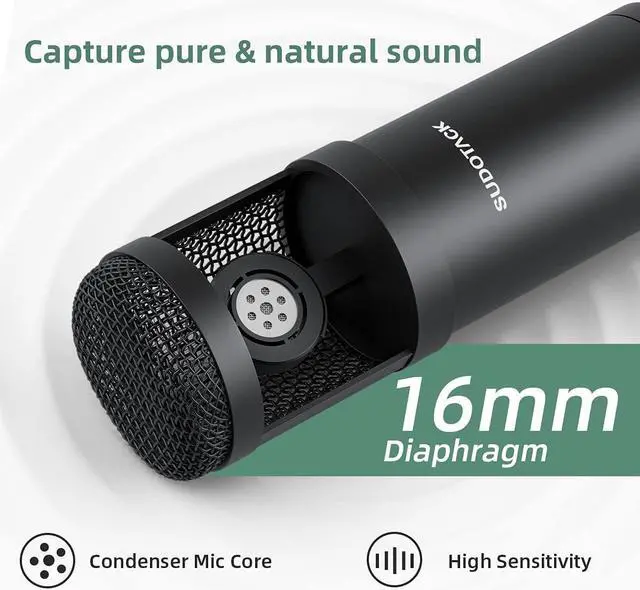 USB Streaming Podcast PC Microphone, 192KHz/24Bit Studio Cardioid Condenser Mic Kit with Sound Card, Boom Arm, Shock Mount, Pop Filter, for Skype, YouTuber, Karaoke, Gaming, Recording