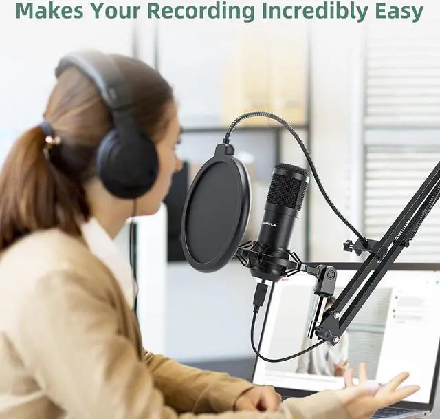 The microphone comes with a microphone stand, shock mount, table clamp, anti-wind foam cap, usb a to b cable, and a pop filter. These accessories can effectively minimize the noise from unwanted vibrations or plosives