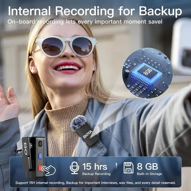 Charging case included - make the kit easy to carry on, transmitter up to 10 hours of operating time (about 6 hours when the onboard recording is enabled), transmitter and receiver charging time is 1.5 hours, charging case charging time is 2.5 hours, charging case support charging (2*TX+1*RX) 1.2 times