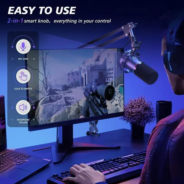 The podcast microphone has a 2-in-1 smart knob, to adjust the mic gain and headphone volume. And one-click mute key with an LED indicator helps you to instantly mute the mic. The microphone is equipped with a 3.5 mm headphone jack, which enables full recording and monitoring at the same time as desired by recording professionals. PD200XS podcast microphone kit equips a sturdy and adjustable microphone boom arm, allowing you to position it at the perfect angle for optimal sound capture