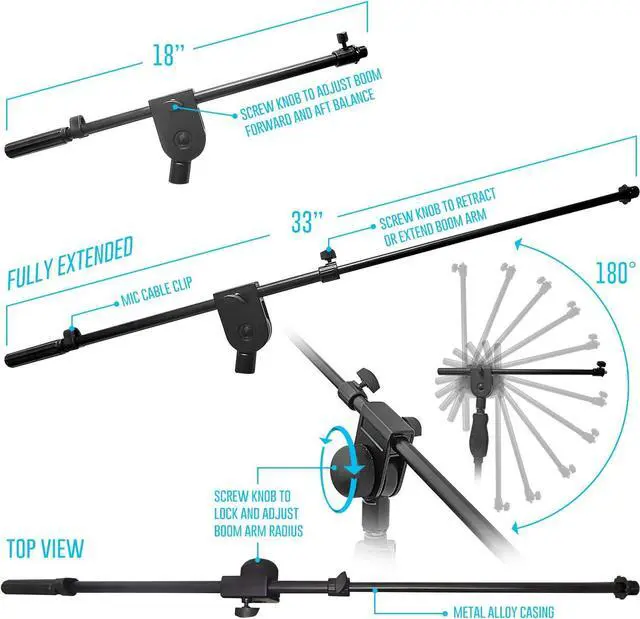 MS-201RB Boom Microphone Stand with Soft Grip Squeeze Quick Clutch Height Adjustment