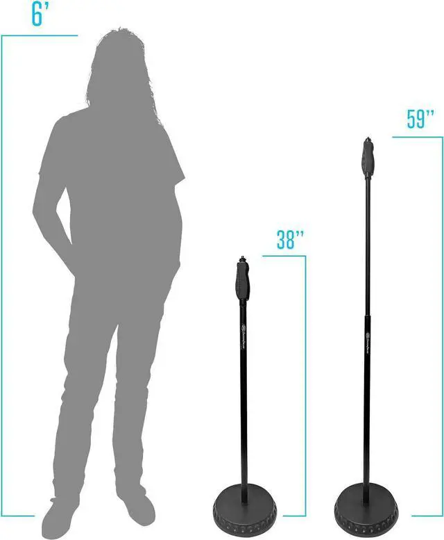 Deluxe microphone stand with a 10.25" die-cast metal round base that weighs 6.8 lb.