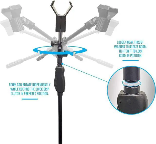 The ergonomic comfort clutch handle allows you to adjust the microphone stand's height easily with a single hand.