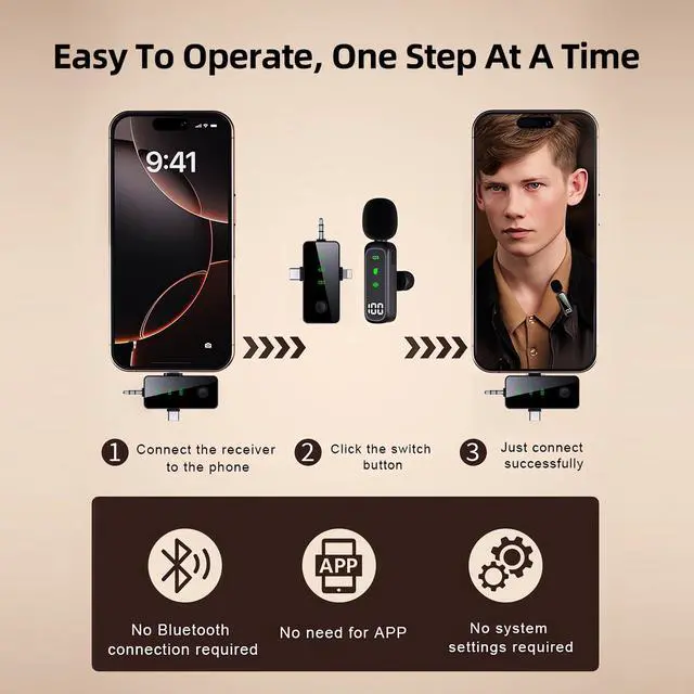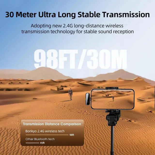 Bonkyo 3 in 1 Wireless Lavalier Microphone for iPhone & Android - Mini Video Recording Mic, Ultimate Noise Cancellation, Extended Battery, and Real - Time Monitoring for Vlogging, YouTube & Interviews