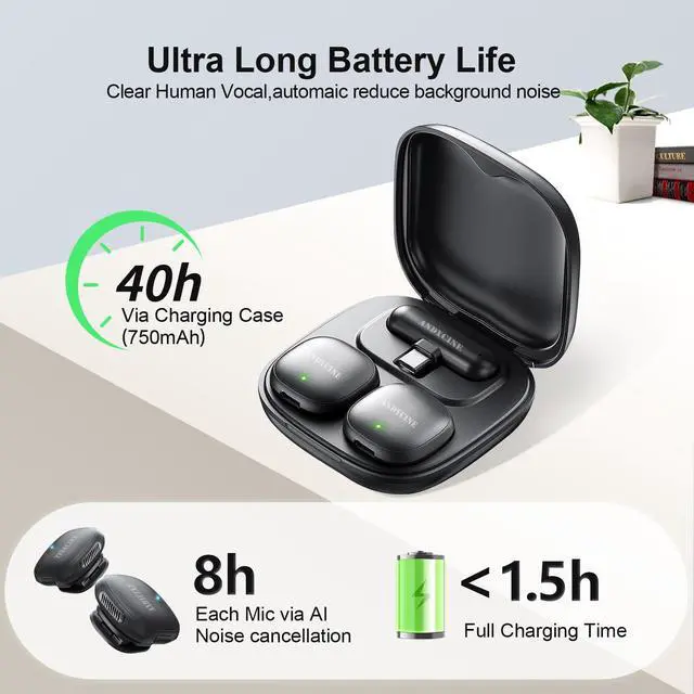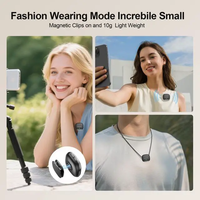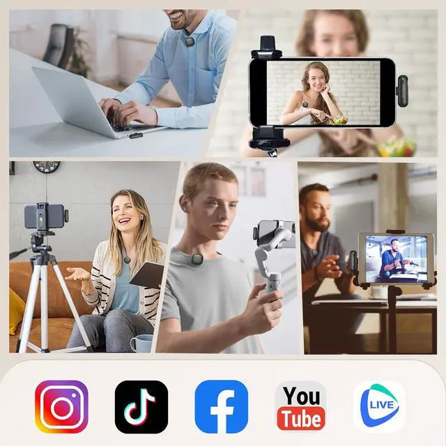 - [Wide compatibility]With 48KHz 16 bit capture rate,20Hz-20KHz tone, 50meters transmission range. Powered by AI and DSP noise cancellations.The transmitter dongles magnetic clips with 360 rotation base.Easy to clip on and remove. Support up to iphone 15,16,17series, android phones, tablet or laptop with USB-C ports. No apps, no drivers,no bluetooth or WIFI configurations.Your ideal wireless lapel microphones for live streaming,podcast,vlogs, interviews etc.