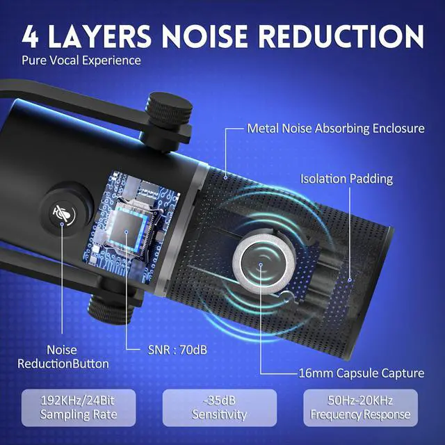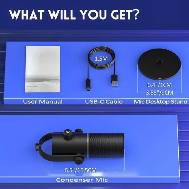1. This desktop microphone with USB digital output compatible with Android devices, computers, and analog audio devices.