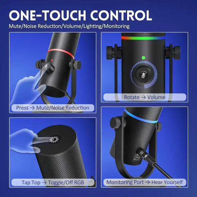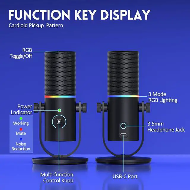 3. The microphone is cardioid pattern for different recording scenarios, and it support mute function and multiple lighting RGB effects.
