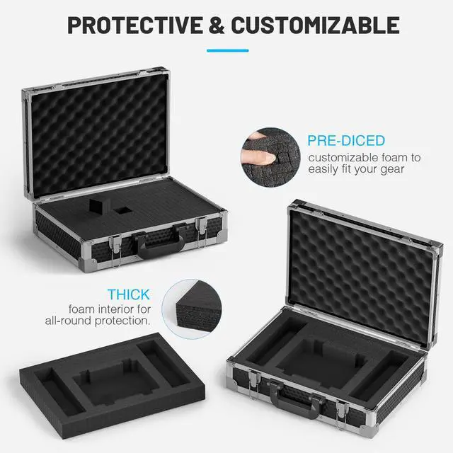 Thick foam interior for all-round protection. The customizable lower layer to fit your items and an upper egg-crate layer for enhanced cushioning. Suitable for securing and safeguarding your valuables with ease.