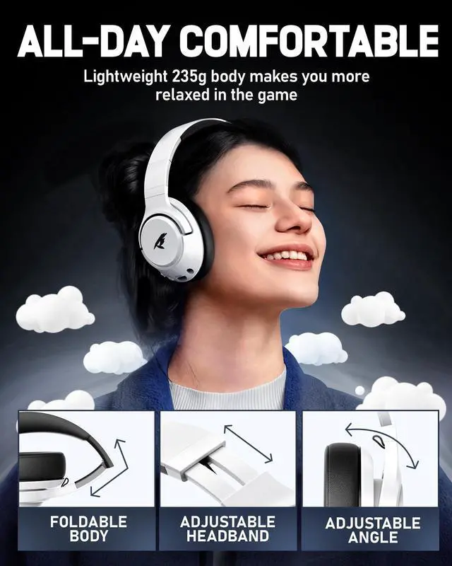 Enhanced Wireless Connection: Enjoy the freedom of cordless gaming with our pc gaming headset's 2.4GHz wireless connection. Reliable and stable connection technology and a 15-meter wireless range allow you to move freely without losing connection quality, perfect for large spaces or active gaming sessions. And latency as low as 20ms ensures audio-action synchronization, giving you a competitive advantage in fast-paced games. (Press the M button for 3 seconds to switch to Bluetooth mode.)