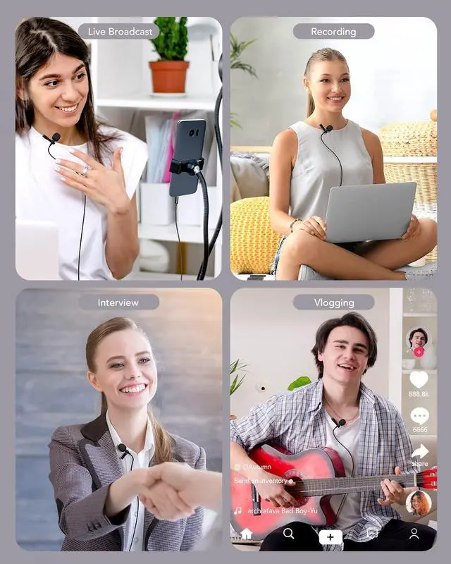 The professional grade lavalier lapel microphone, performs significantly better than the majority of the built-in microphones, is suitable for Live Broadcast, Recording, Interviews, Vlogging , Podcast, etc.