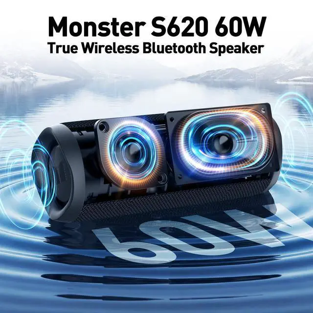 Monster Speaker Monster S620 Bluetooth speakers, meticulously crafted by Noel Lee and the Monster design team in the United States, leverage 40 years of audio engineering experience. These finely tuned speakers deliver 60W of audio output power and 360° stereo sound, providing a truly cinematic surround sound experience and immersive music enjoyment.